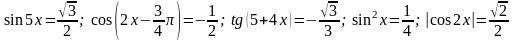 Аналогичные задания могут служить средством контроля за сформированностью у учащихся умений решать простейшие тригонометрические уравнения.