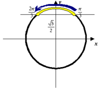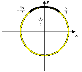 Необходимо продемонстрировать учащимся, что виток, который является решением неравенства, повторяется через один и тот же промежуток, равный периоду тригонометрической функции. Так же можно рассмотреть аналогичную иллюстрацию для графика функции синус.