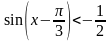 . Нас интересует первый случай, и тогда добавив к концам этого промежутка число, кратное периоду синуса, получим решение неравенства