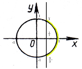Шаг 2. Эта прямая разделила окружность на две дуги. Выделим ту из них, на которой изображаются числа, имеющие косинус больший, чем