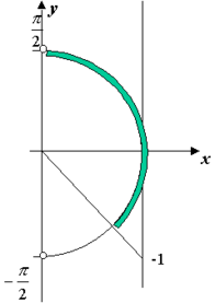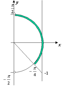 Шаг 3. Второй конец дуги в случае решения неравенств с тангенсом всегда можно обозначить как арктангенс соответствующего числа. В данном случае это арктангенс -1, то есть
