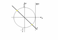 Шаг 2. Точки пересечения проведенной прямой с окружностью это и есть решения данного уравнения, в данном случае это арктангенс -1, то есть