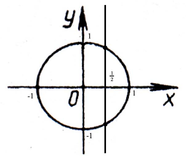 . Проведем через нее прямую, параллельную оси ординат. Эта прямая пересечет единичную окружность в двух точках. Каждая из этих точек изображает числа, косинус которых равен