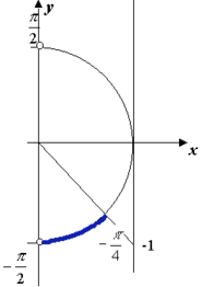 Шаг 2. Выделим дугу, для точек которой тангенс больше или равен -1. Один из концов этой дуги уже обозначен числом