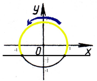 Шаг4. Для того чтобы выбрать число, соответствующее второму концу выделенной дуги, «пройдем» по этой дуге из названного конца к другому против часовой стрелки, учитывая, что числа, которые мы будем проходить, увеличиваются. Запишем число, которое изображается на единичной окружности вторым концом отмеченной дуги