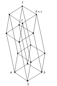 Примечание. Приведённое доказательство не полностью использует условие, что L – дистрибутивная решётка с дополнениями. Фактически, мы пользовались только тем, что L имеет нуль и является решёткой с относительными дополнениями. Такая решётка называется обобщённой булевой решёткой.