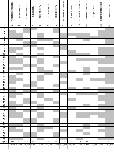 | 14. | Расслабленный | 3 2 1 0 1 2 3 | Напряженный |