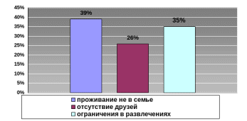 Из диаграммы 9 видно, что из возникающих проблем у ребенка с связи с заболеванием наибольший процент набрали ответы проживание не в семье 39% и ограничения в развлечениях 35%