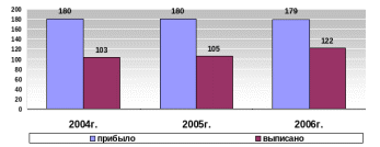 | Выписано | 103 | 57,2 | 105 | 58,3 | 122 | 68,1 |