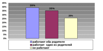 Как видно из диаграммы 8, что достаточно большой процент родителей 26% от общего числа опрошенных, не заняты в труде.