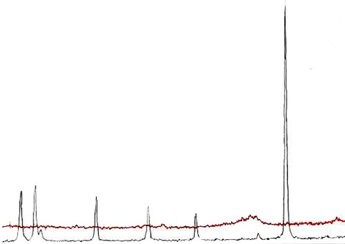 Путем проведения рентгенофазового анализа было установлено, что яичная скорлупа содержит, в основном, карбонат кальция, а мелкоизмельченный зуб имеет набор межплоскостных расстояний близкий к гидроксиапатиту (рис.).
