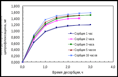 Результаты изучения десорбции ципрофлоксацина МКЛ
