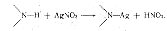 Например, концентрацию никотиновой кислоты можно определить, после нейтрализации ее аликвотной части, осаждением точно измеренным избытком титрованного раствора нитрата серебра. Происходит образование малорастворимой соли. Через 30 мин осадок отфильтровывают. К аликвотной части фильтрата прибавляют несколько капель разведенной азотной кислоты, раствор железоаммониевых квасцов и титруют 0,1 М раствором тиоцианата аммония до появления розового окрашивания раствора.