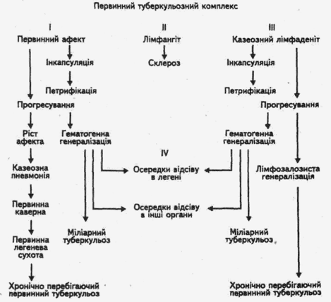 Схема 1. Варіанти перебігу первинного туберкульозу