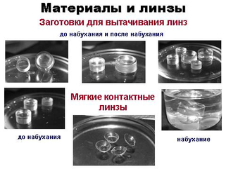 Рис. 1.2. Мягкие контактные линзы и материалы для их изготовления.