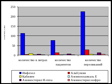| Наименование | Количество в литрах | Количество пациентов | Количество переливаний |
