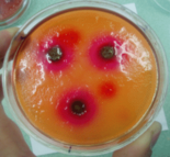 Затем определяется среднее арифметическое (м) диаметров окрашенных зон трех параллельно проведенных опытов (мм)