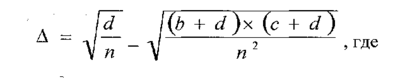 Величина Δ подсчитывается из ''сетки'' 2×2 по формуле (P. Mattiusi 1970г)