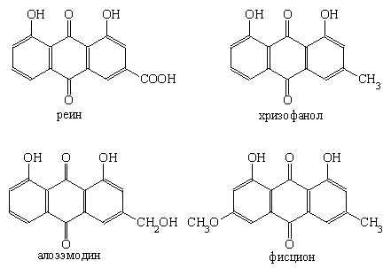 Качественные реакции. Для диагностики сырья проводят также качественные реакции на антраценпроизводные. Для этого внутреннюю поверхность смачивают 10%-ным раствором гидроксида натрия и наблюдают появление кроваво-красного окрашивания.
