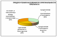 Очень важно определить как потребители относятся к оригинальным препаратам и препаратам-аналогам. Фирма «Имплозия» не будет разрабатывать принципиально новый препарат, поэтому для этой компании интерес представляют потенциальные покупатели, которые отдают предпочтения препаратам-аналогам, либо которым все равно. Эти предпочтения отражены в диаграмме, приведенной ниже (рис. 8).