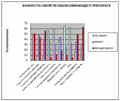 Из этой диаграммы можно выявить следующее: для покупателя наиболее важны свойства первой группы – действие препарата (быстрота, продолжительность, побочные эффекты), а, следовательно, и гарантированность этого действия (клиническая исследованность и наличие защиты от подделки).