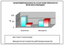 Далее выяснилось, что мужчины менее компетентны в этом вопросе. Из всех опрошенных мужчин лишь 20,7% различают фармакологические группы препаратов, в то время как тот же процент у женщин гораздо выше (55,1%). Эта зависимость отражена на диаграмме (рис. 6).