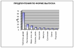 Существует несколько форм выпуска препаратов (таблетки, драже, ампулы, порошки, растворимые таблетки и т. д.). Среди всех возможных форм фирме для начала производства необходимо выбрать одну. Эта форма должна выбираться в зависимости от ряда факторов, таких как предпочтения населения (рис. 9), назначения препарата (общее действие либо местное обезболивание) и т. д. В последствие фирме можно будет расширить производство за счет выпуска нескольких форм своего препарата.