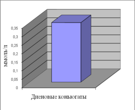 1. Содержание диеновых коньюгатов в плазме крови небеременных женщин составило 0,26-0,54 ммоль/л.