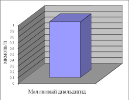 Анализ полученных результатов показал, что уровень ДК, являющихся первичными продуктами ПОЛ, существенно превышает таковой для конечного продукта – МДА.