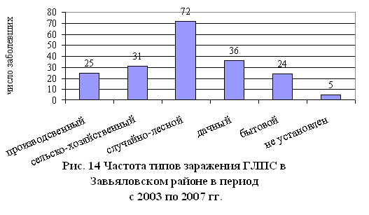 В Завьяловском районе превалирует, как и в целом по Удмуртии случайно-лесной тип заражения. Рис. 14
