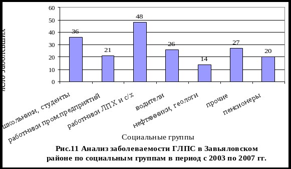 Анализ динамики, распространения и специфике заболеваемости по возрастам, социальным группам и т.д. ГЛПС населения Завьяловского района проводился на основе данных предоставленных Росприроднадзором по Удмуртской Республике и медицинскими картами стационарного больного Завьяловской Центральной районной больницей за несколько лет с 2003 по 2007гг.