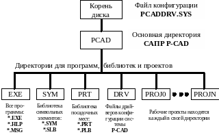Рисунок 7.1- Размещение на диске программ и рабочих проектов САПР P-CAD 8.5