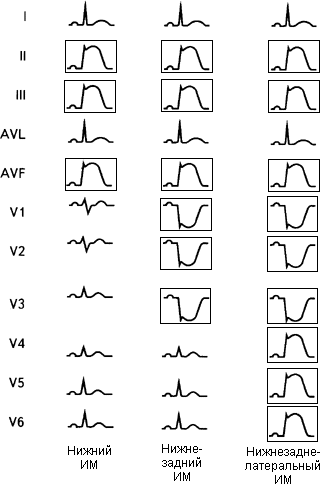 Данные электрокардиограммы, показывающие локализацию инфаркта: задняя стенка