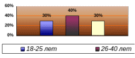 Как видно из диаграммы 2, наибольшую группу составляют доноры в возрасте от 26 до 40 лет – 40% от общего числа респондентов.