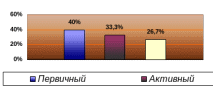 Как видно из диаграммы 3 достаточно большой процент 40% среди респондентов из числа первичных доноров, и по 26,7% и 33,3% доноры резерва и активные доноры соответственно.