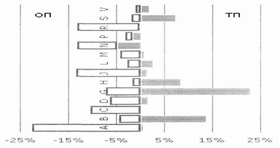У 2001 році структура продажу у фармакотерапевтичних групах змінювалася нерівномірно (Рис.1.7). Найбільш високими темпами, у порівнянні з 2000 роком, йшов ріст споживання лік у групах В (Засоби, що діють на систему крові і гемопоез), G (Засоби, що діють на сечостатеву систему, полові гормони) і Н (Системні гормональні препарати, крім полових гормонів). Скоротилися, у порівнянні з попереднім роком, обсяги продажу лікарських препаратів у групі N (Засоби, що діють на нервову систему) і в групі Р (Противопаразитарні засоби, інсектициди і репеленти). Якщо розглядати структуру споживання в абсолютних величинах, то лідерами за обсягами продажу як і раніше залишилися групи А (Засоби, що діють на систему травлення і метаболізм), J (Протиінфекційні засоби для системного застосування), N (Засоби, що діють на нервову систему) і R (Засоби, що діють на дихальну систему).