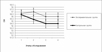 Контрольная группа - 55,4 ± 3,4 см