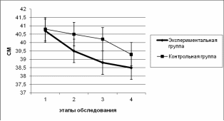 Контрольная группа - 40,8 ± 1,6 см