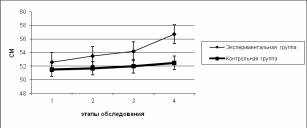 Контрольная группа - 54,5 ± 1,2 см
