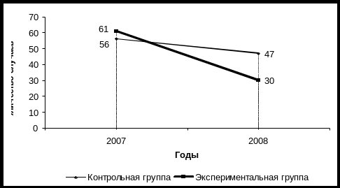 По завершении эксперимента мы проанализировали заболеваемость детей контрольной и экспериментальной групп за 2008 год. Данные представлены в таблице 2.