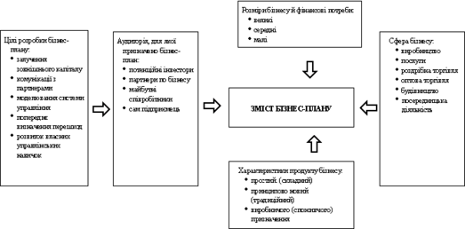 Зміст і структура бізнес-плану залежать також і від інших факторів, зокрема: