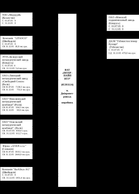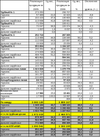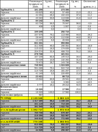 Таблиця Д.2 - Аналіз географії реалізації товарної продукції 2005 року в основних цехах ВАТ «Інтерпайп НТЗ» (в тис.грн.) тис.грн.