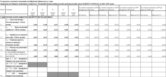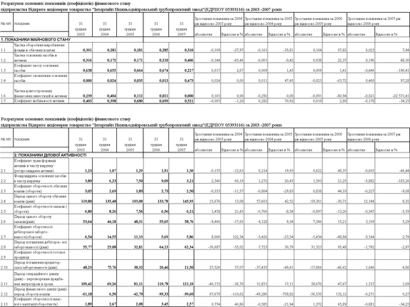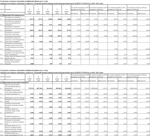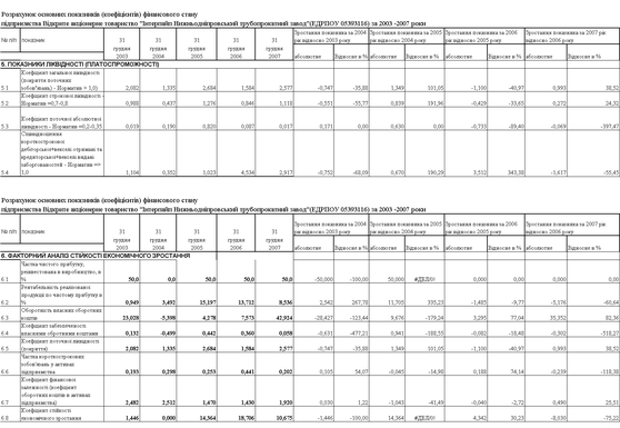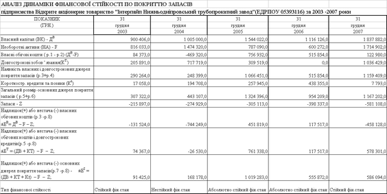 Результати розрахунку показників фінансового стану ВАТ “Інтерпайп НТЗ” у 2003 –2007 роках