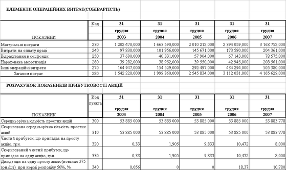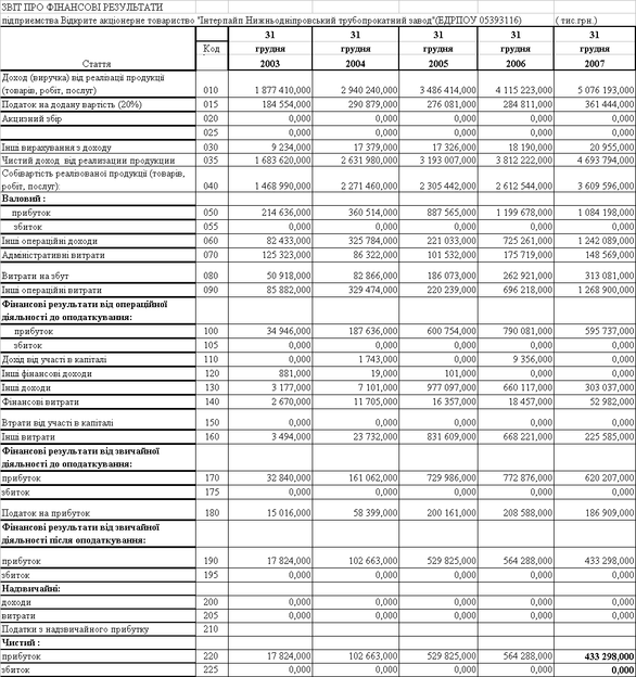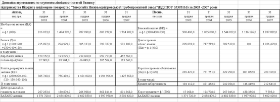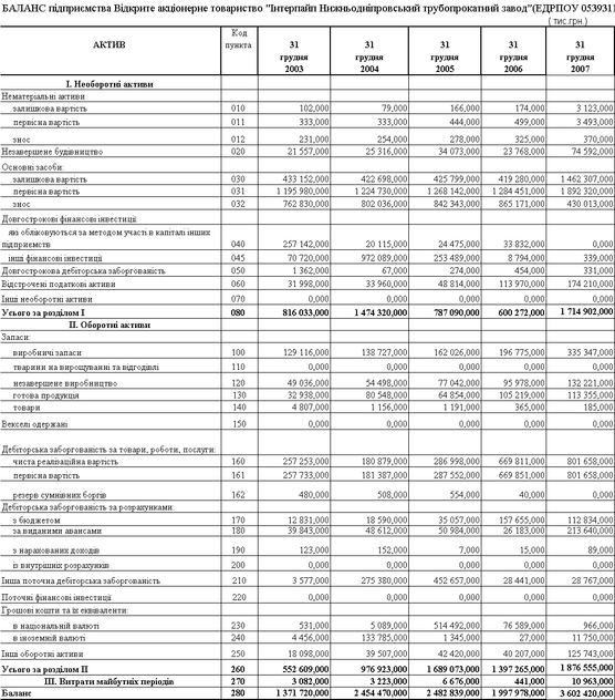 Баланси та звіти про фінансові результати ВАТ “Інтерпайп НТЗ” за 2003 –2007 роки