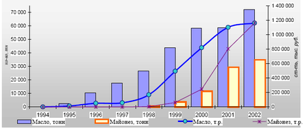С 1998 года в России постепенно растет потребление растительных масел. В 2000 году емкость рынка составила около 1600 тыс. тонн (из них 1 150 тыс. тонн приходилось на подсолнечное масло), а в 2001 году, увеличившись на 9%, достигла 1 750 тыс. тонн. В 2002 году наблюдался дальнейший рост до 1 850 тыс. тонн.