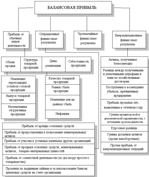 Балансовая прибыль включает в себя прибыль от обычных видов деятельности, финансовые результаты от операционных и внереализационных операций и чрезвычайных обстоятельств. Схема формирования балансовой прибыли представлена на рис. 5.
