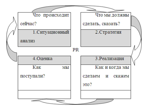 Четырёхэтапный процесс решения проблем public relations можно представить в виде схемы (Рисунок 1).