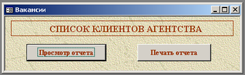 При выборе четвертого пункта главного меню работников – «Списки клиентов» открывается форма для вывода списков на экран и на принтер (рис. 10).