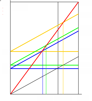 Здесь показан доход в зависимости от коэффициента загрузки и величины издержек в зависимости от срока возврата кредита и коэффициента загрузки. FC, VC, TC – издержки постоянные, переменные и полные соответственно. Числа 1, 2, 3 – количества лет возврата кредита.