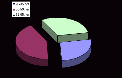 Диаграмма представленная на рисунке 7 демонстрирует соотношение персонала по возрастному признакам: